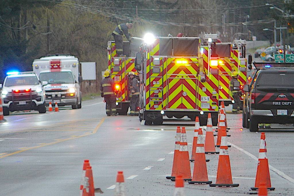 Langley RCMP closed Fraser to traffic in both directions and vehicles were being diverted while fire crews worked.