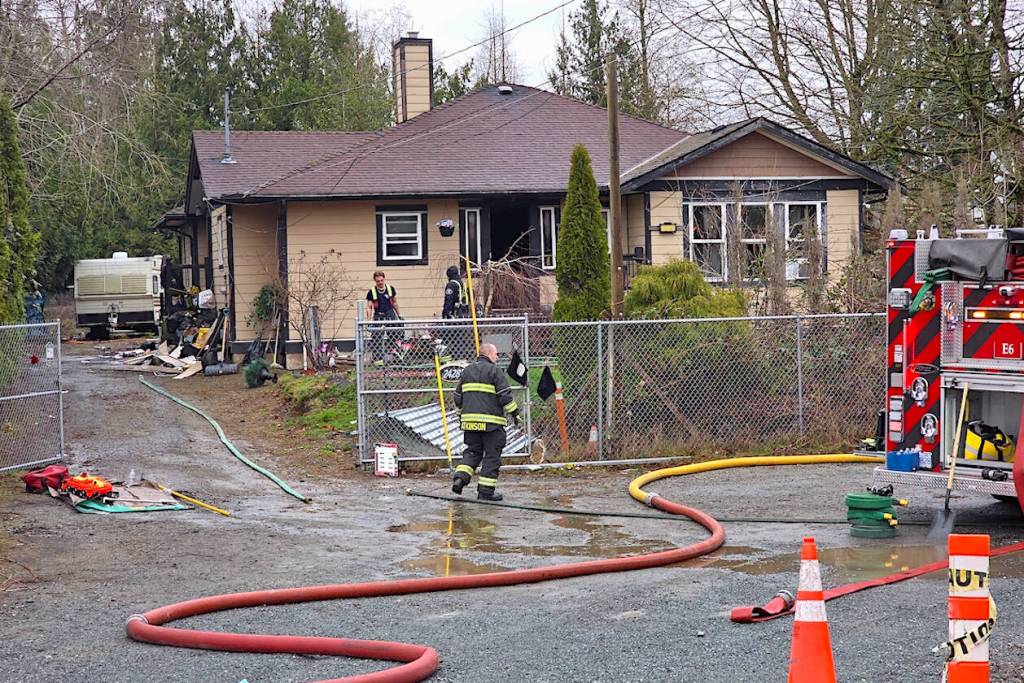 First responders including multiple fire, ambulance and police were called to the scene of a house fire between 240 and 244 Streets on Fraser Highway in Langley on Saturday morning around 7:30 a.m.